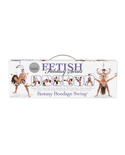 But this is no ordinary pleasure swing this swing features strategically placed D-rings attached to the swing that connect to wrist and ankle cuffs. The adjustable cuffs feature metal chains and metal clips that work together to form the most amazing bondage swing ever created. Unlike ordinary swings, the Fantasy Bondage Swing has sturdy metal D-rings strategically placed along the swing, allowing you to explore a variety of restraint positions while you swing. With unlimited positions to choose from, this swing becomes the centerpiece in your own private, ultimate bondage playground. It’s perfect for beginners and fun and exciting for everyone!