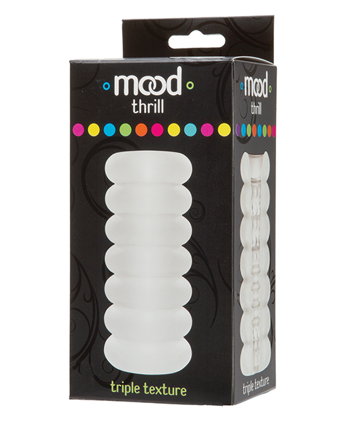 Triple your fun with Mood Thrill! Made of our incredibly lifelike ULTRASKYN material, this handheld stroker features three internal textures for versatile stimulation. The unique triple-texture pleasure tunnel includes large massage beads at the entry, thick ribbing in the middle, and stimulating beads tapering to a tight finish at the open-end. Easy to clean. It even warms to the touch!