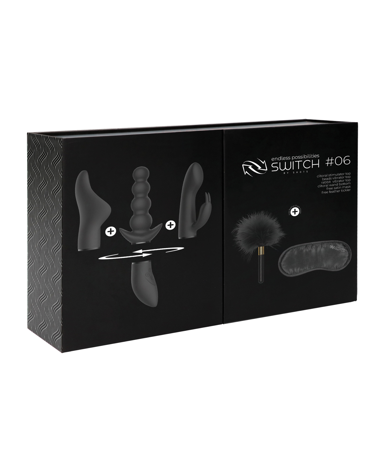 This box features the Vibrating Clitoral Bottom Base which has a slight angle and a pointy bottom. One side is covered with some rousing ribs for extra stimulation. The base boasts a 10 speed motor that will rev up the vibrations to a toe-curling 15,000rpm – all at less than 60 dB Noise Level. This generous box features three interchangeable attachments: a Clitoral Vibrator, a Beaded Vibrator and a Rabbit vibrator. Just click the attachment into the base, twist and play! The Clitoral Vibrator attachment has a beautiful pointed head with two side-wings for extra stimulation. The Beaded Vibrator attachment opens up a whole world of possibilities. With 4 different balls, going up in diameter, the orgasmic world is at your fingertips! Use it vaginally or anally, the choice is yours! The Rabbit vibrator attachment has a flattened head for G-spot stimulation and two vibrating ears to give the clitoris some extra attention. Both base and attachments are made from medical grade silky-smooth silicone and ABS. Color – Black